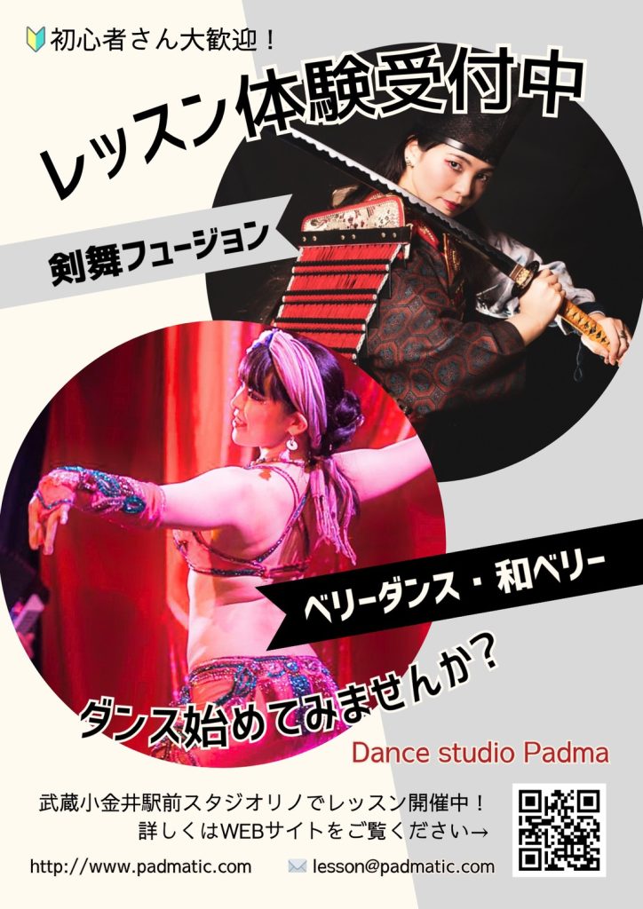 ベリーダンスレッスンに加え、新たに剣舞fusionダンスや親子ダンスのレッスンもお楽しみいただけます。